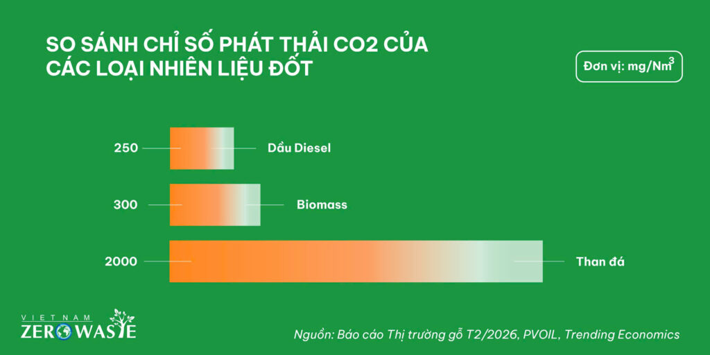 Bảng so sánh chỉ số phát thải và lợi thế của biomass từ Việt Nam Zero Waste