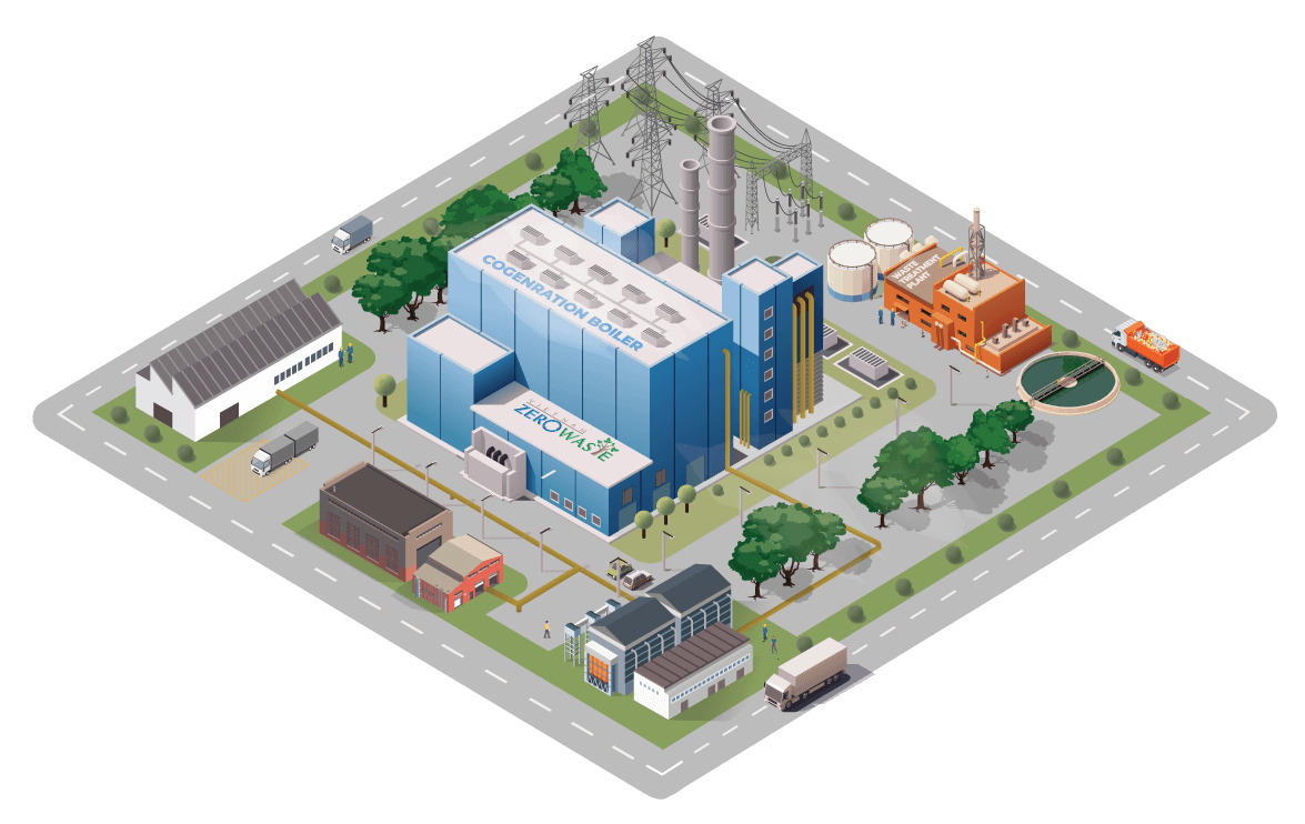• The industrial park will easily manage the project’s production and emissions in a centralized manner.